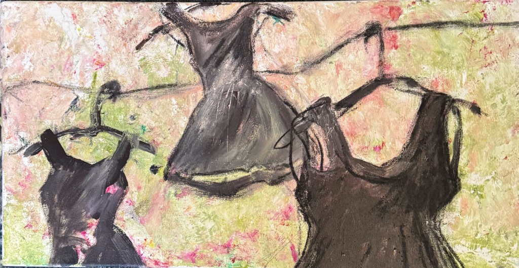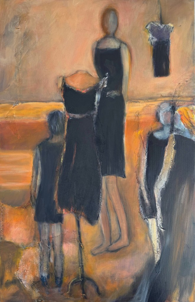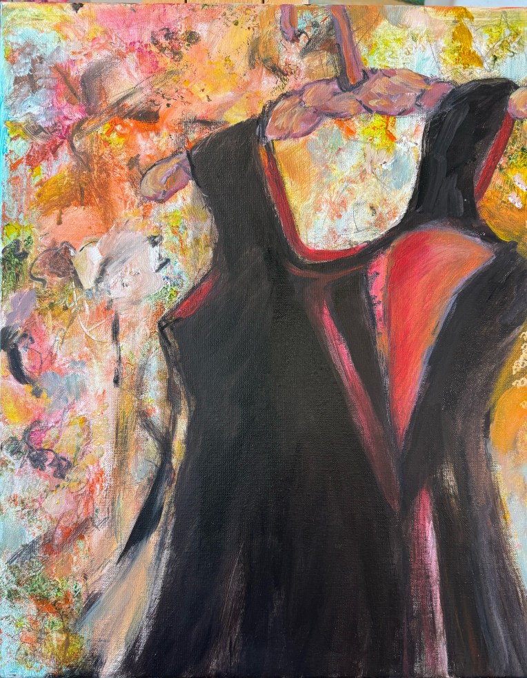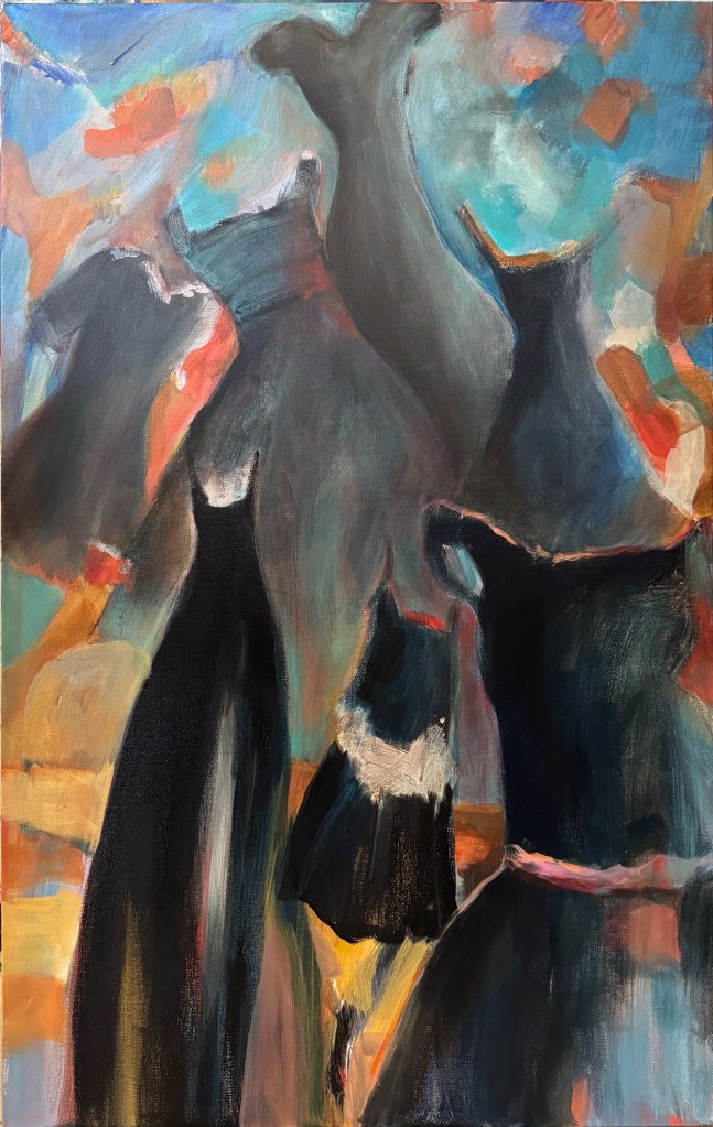 The Little Black Dress Mom’s Little Black Dress acrylic, charcoal, and pastel on canvas 30″ x 15″ 2025 Available We Can Come Together acrylic, fabric, and charcoal on canvas 36″ x 24″ 2025 Available Drifting Dresses acrylic and charcoal on canvas 36″ x 24″ 2025 Available Generations acrylic and charcoal on canvas 12″ x 12″ 2025 Private Collection The Fire Within acrylic and ink on canvas 12″ x 12″ 2025 Available Transformation acrylic on canvas 40″ x 30″ 2025 Available Elegy in Black and Bloom acrylic on board 14″ x 11″2025 Private Collection Becoming: Before the Ballacrylic and charcoal on canvas 36″ x 24″ 2025 Available We Have Choices acrylic and charcoal on canvas 12″ x 36″ 2025 Available Coming and Going acrylic and charcoal on canvas 48″ x 30″ 2025 Available On the Line acrylic and charcoal on canvas 12″ x 24″ 2025 Available A Feminine Stance acrylic and charcoal on canvas 24″ x 24″ 2025 Available The Heart of the Dress acrylic and charcoal on canvas 20″ x 16″ 2025 Available We Can Dance acrylic on canvas 14″ x 11″ 2025 Private Collection Beyond the Horizon acrylic and charcoal on board 24″ x 18″ 2025 Available A Nod to the Little Black Dress 14″ x 11″ acrylic on board 2025 Private Collection Hanging acrylic and charcoal on canvas 12″ x 12″ 2025 Private Collection Past, Present, and Future acrylic and charcoal on canvas 12″ x 12″ 2025 Available Lunar Grace acrylic and charcoal on canvas 36″ x 24″ 2025 Available The Whole Is Greater than Its Parts acrylic, pattern pieces, fabric, and charcoal on canvas 24″ x 20″2025 Available The Architecture for Dress acrylic, pattern pieces, and charcoal on canvas 24″ x 20″ 2025 Available Dignity acrylic and charcoal on canvas 36″ x 24″ 2025 Available Measuring Up acrylic and pattern pieces 40″ x 30″ 2025 Available Like Loading...